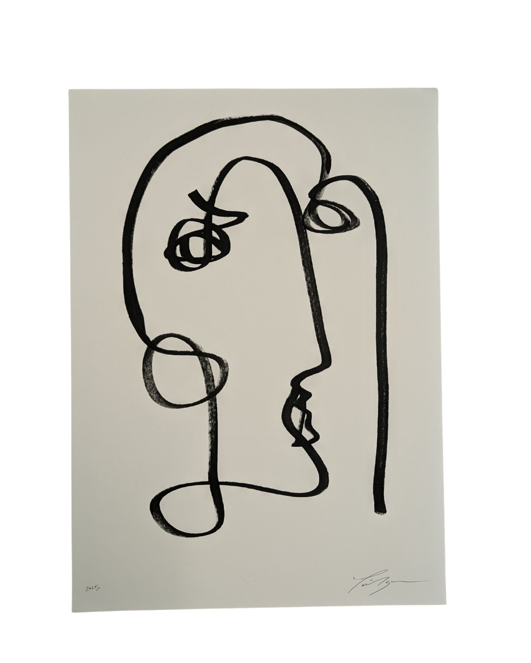 Long Form stretches the line vertically, creating a portrait that feels architectural and expressive. The elongated silhouette gives the work a striking visual identity, while the looping internal shapes add movement and character. A standout piece with gallery appeal.